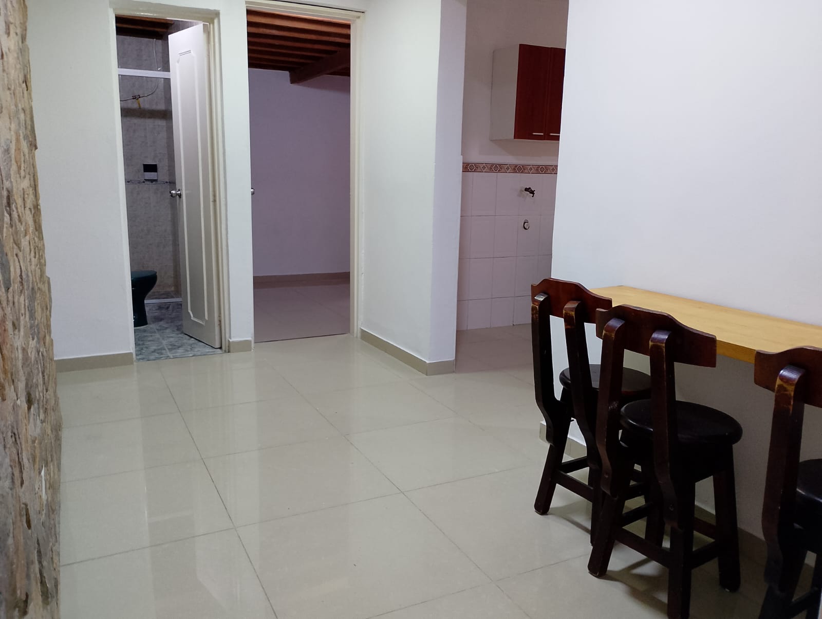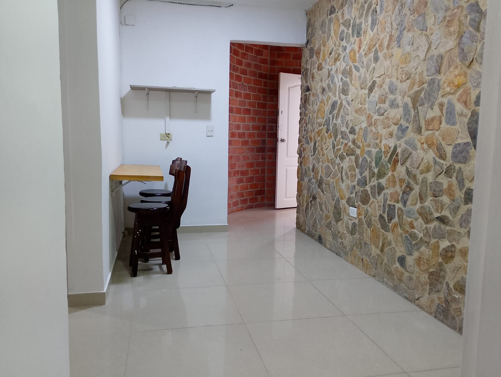 Cuenta con muy buena iluminación y excelente ventilación. Dispone de 2 alcobas con closet, 2 baños cabinados (uno con calentador a gas y otro con ducha electrónica tipo bocerín), sala comedor, cocina integral con red de gas, calentador de agua, zona de ropas y patio. Además, incluye citófono y la posibilidad de arrendarlo con las sillas ubicadas junto a la barra. Área: 40 m². Se encuentra cerca de la Universidad Pontificia Bolivariana, el Centro Comercial Unicentro, Parques del Río y cuenta con buenas rutas de acceso.
