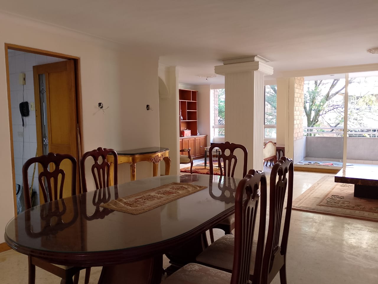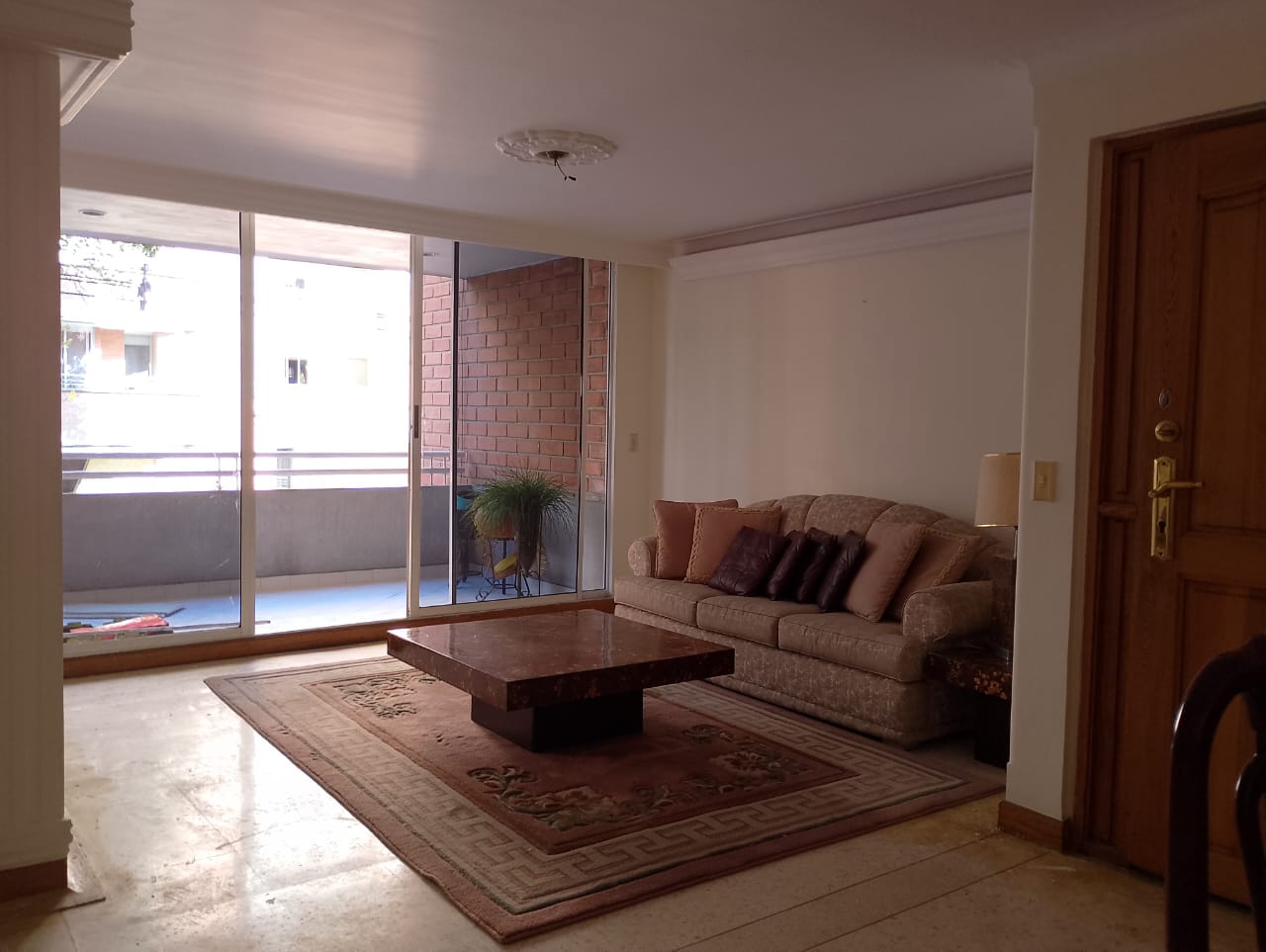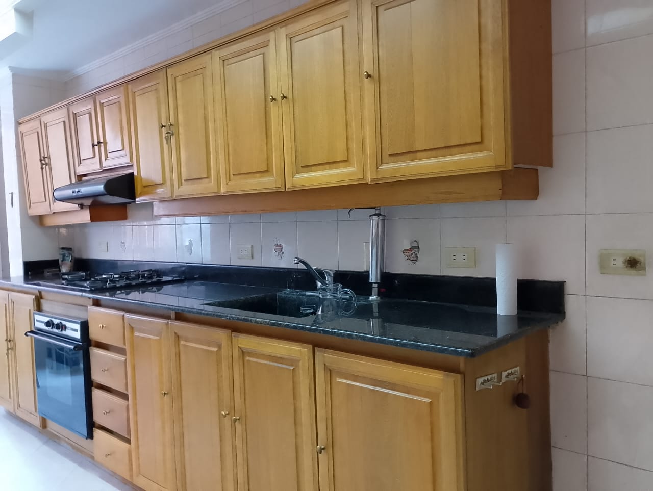 Apartamento con un área de 179 m², distribuido de manera amplia y funcional. Cuenta con 3 alcobas con clóset más alcoba de servicio, 2 baños cabinados (uno en la alcoba principal y otro para las alcobas auxiliares), baño social sencillo y baño de servicio. Dispone de dos salas, comedor, estudio, tres balcones, cocina integral, red de gas, calentador de agua y zona de ropas. Incluye dos parqueaderos y cuarto útil.