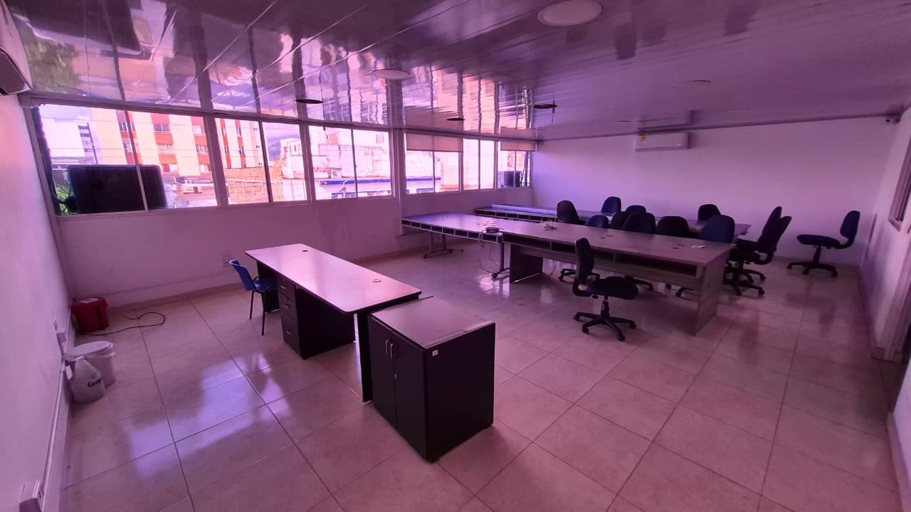 Cuenta con: Piso 1: Sala de recepción, Bodega/Garaje con acceso independiente, Salón con oficina, 1 Baño, 1 Oficina, Patio interior, Pequeñas bodegas (Gabinetes), Zona limpia/lavado. Piso 2: 6 Oficinas (1 con baño privado), 2 Oficinas abiertas, 2 Baños. Piso 3: 1 Salón amplio, Zona de cafetería (Cocina tradicional), 1 Baño, 1 Sala de reuniones. Área: 650 mt² aprox. Valor: $1'700.000.000.